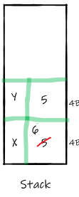 Int32 y; // Allocation of 4 uninitialized Bytes on the Stack for y