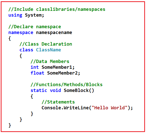 ุงููููู ุงูุฃุณุงุณู ูุฃู ููุฏ C# ุจุณูุท ุจูููู ูุฏู: