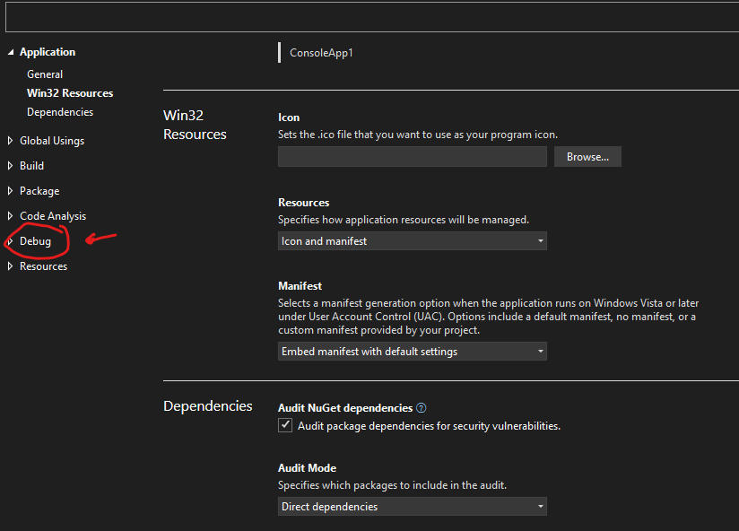 ู ุดุงุดุฉ ุงูู Propertiesุ ุงุฎุชุงุฑ ุงูู Debug tab.
