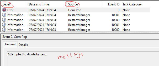 log.WriteEntry(ex.Message, EventLogEntryType.Error) // Message , Type