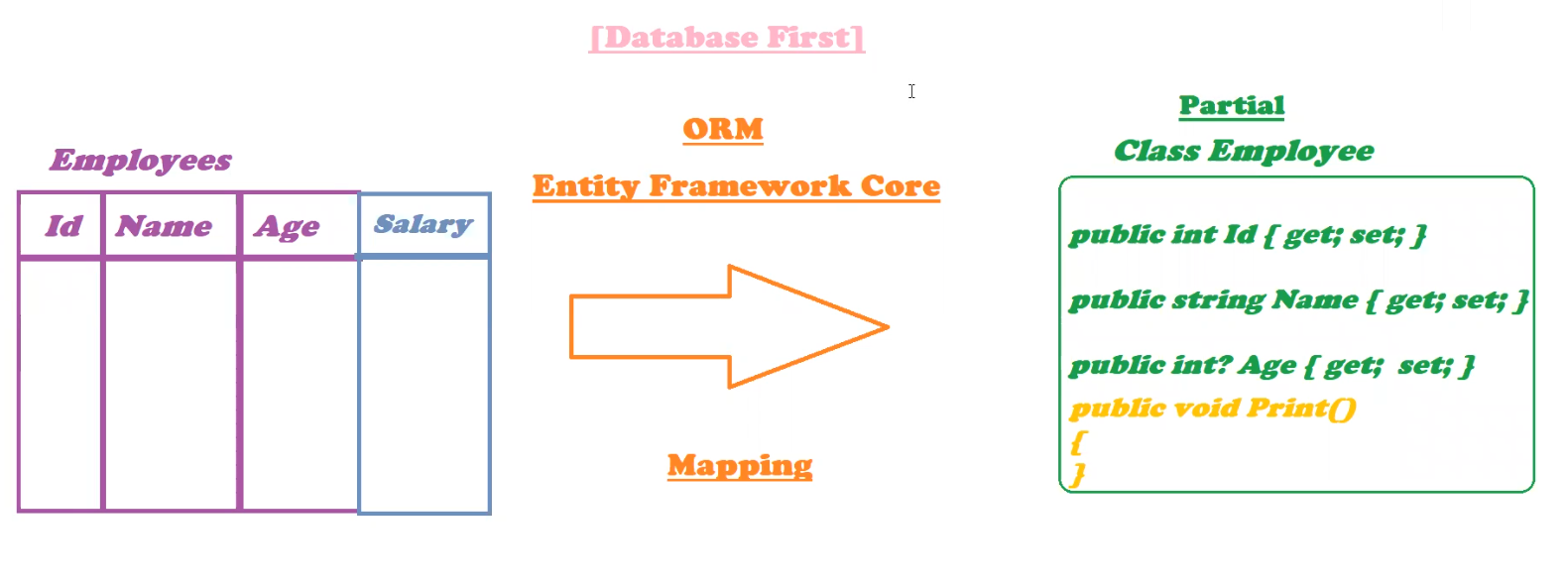 - عشان كدا الـ Entity Framework ذكي لأنه بيعملي الـ Class اللي معموله Mapping بنوع Partial فأنت لو حبيت تزود حاجة أو تنقص حاجة بتزودها في فايل تاني ومهما حصل مش بتأثر على دا يعتبر التكملة بتاعته من الأخر