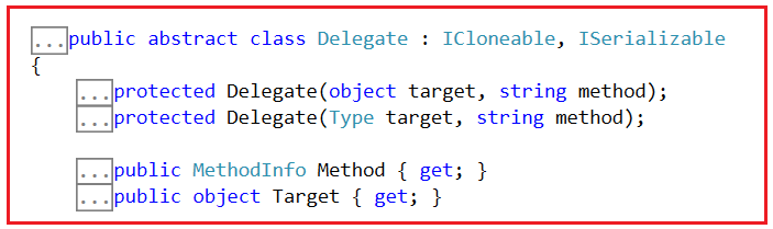 واحد من الـ classes الأساسية جداً في .NET Framework هو Delegate، واللي بيوفر شوية وظائف أساسية. لو روحت لتعريف Delegate class هتلاقيه abstract class.