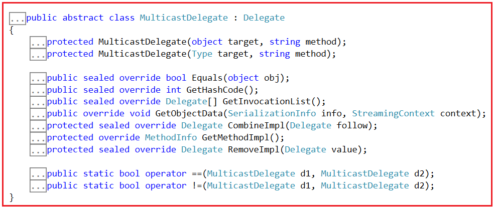 في core class تاني مهم اسمه MulticastDelegate. لو روحت لتعريفه هتلاقيه برضه abstract class وبيورث من الـ Delegate abstract class.