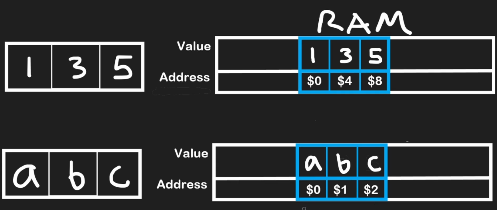 RAMุจุชุชููู ู ู ุญุงุฌุชูู ุฃุณุงุณูุชูู: ุงูููู ุฉ (Value) ูุงูุนููุงู (Address) ุจุชุงุนูุง.