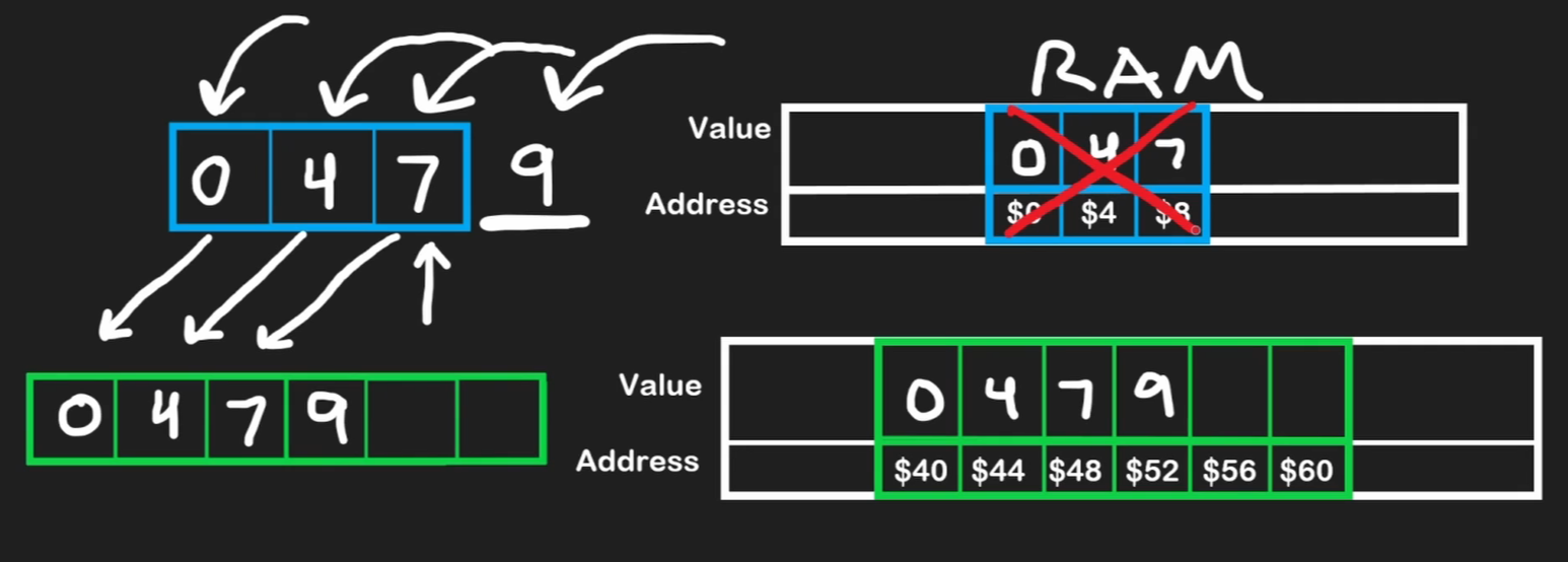 Fixed Arrayุ ู ุด ุจููุฏุฑ ูุถูู ุนูุงุตุฑ ุฌุฏูุฏุฉ ุจุนุฏ ู ุง ูุญุฏุฏ ุญุฌู ูุงุ ูุฅููุง ู ุด ุจูุจูู ุนุงุฑููู ุฅุฐุง ูุงู ุงูู ูุงู ุงููู ุจุนุฏ ุงููArrayูู ุงููRAMูุงุถู ููุง ูุฃ. - ููู